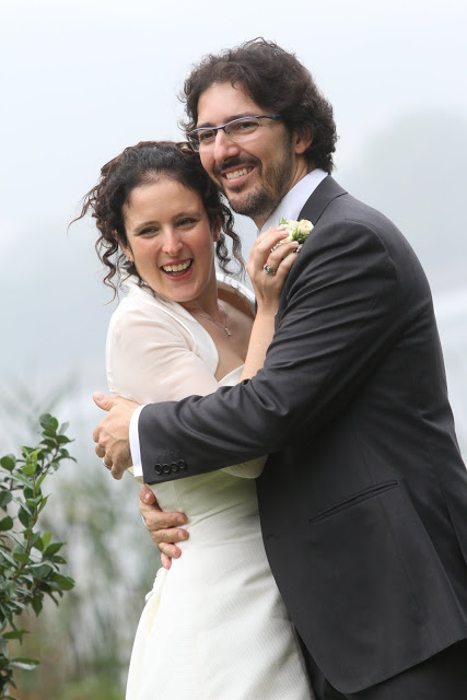 Al ristorante si apre un po' di sole. Il prato infangato ci accoglie per le foto. Ci divertiamo. Musica non da matrimonio, balliamo. Poi si mangia (noi poco), si scherza, si ricevono storie e regali.